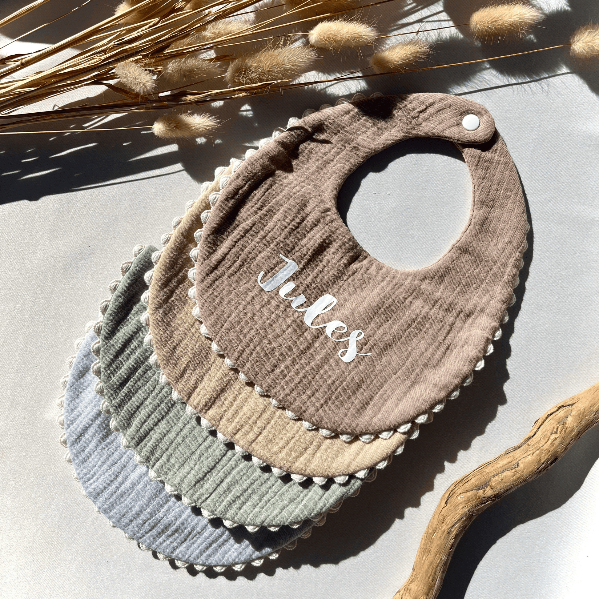 •Chaque bavoir est personnalisé avec soin grâce à la technique du flocage.